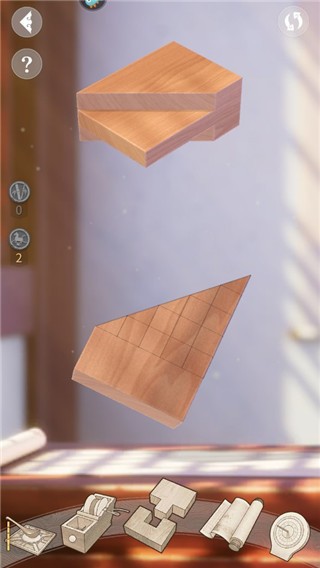 游戏上手容易,以榫卯题材为主的空间解谜任务是我们的核心玩法。你需要通过观察每个关卡的榫卯图纸,想象其中的组合结构。然后通过点击、消除等简单操作打磨零件,拼合出指定的榫卯结构,解开空间谜题。