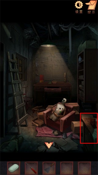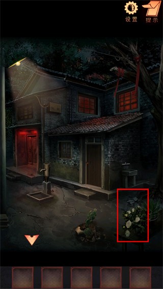 16、点击上方发光的孔洞,查看院内的纸箱,获得牛奶箱上滑块位置的线索