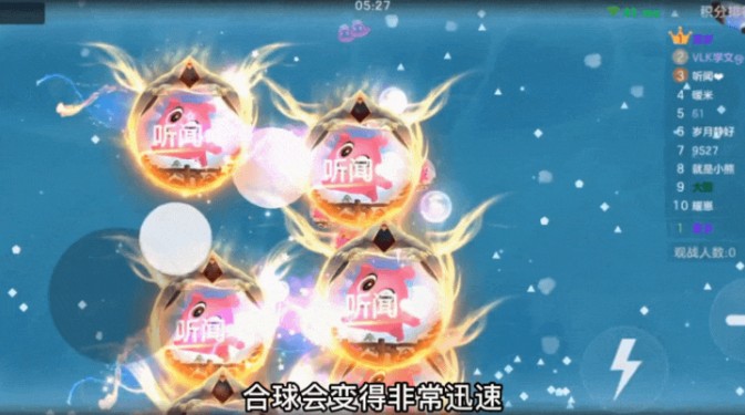 在这个游戏模式里,每场游戏的时长为6分钟,没有死亡次数限制,死亡即可复活。冰雪大乱斗游戏模式里,合球会变得非常迅速,当我们遇到体积比自己大很多的敌人时,要尽快分身逃离,也可以朝着敌人扔雪球反杀他。