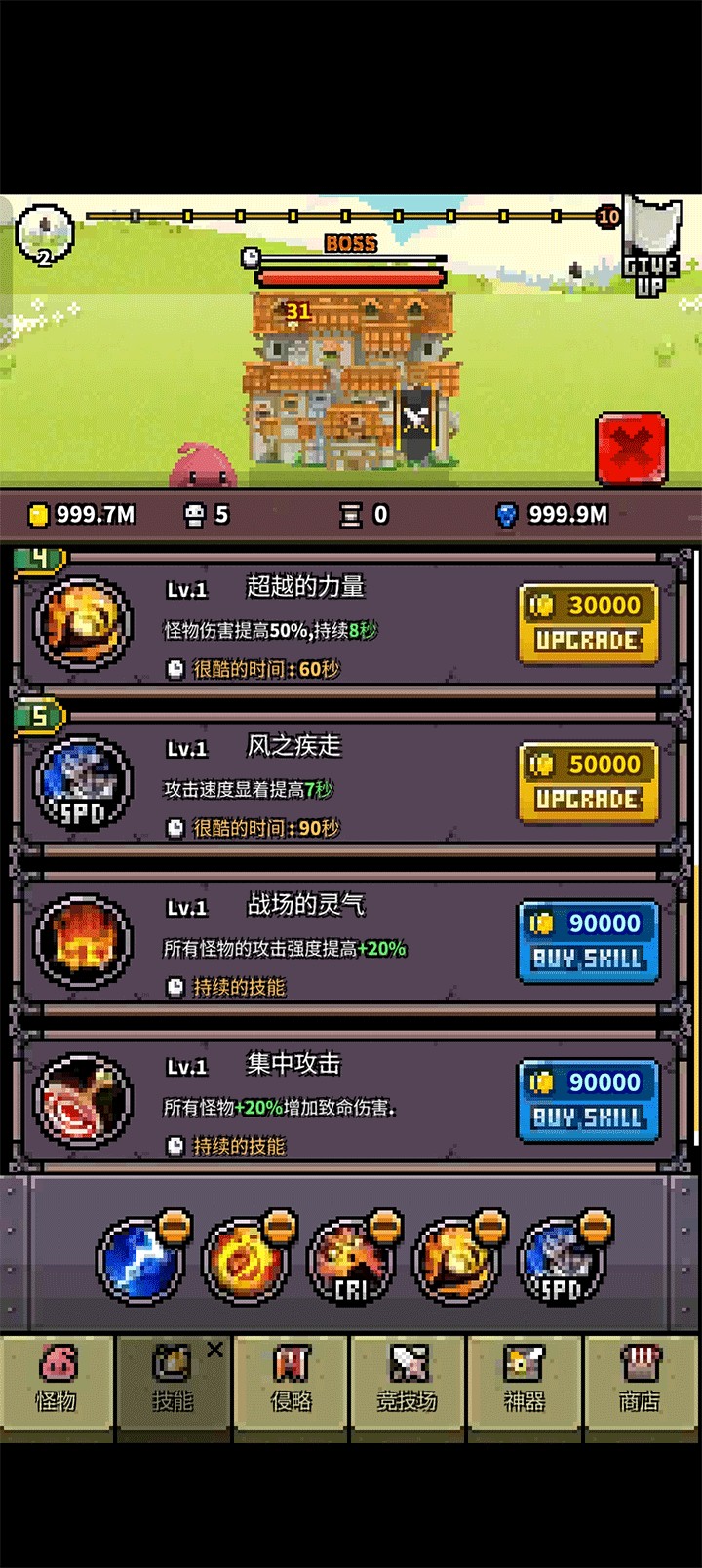 2、购买搭配不同战斗技能,提升怪物的战斗力
