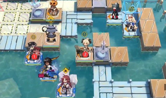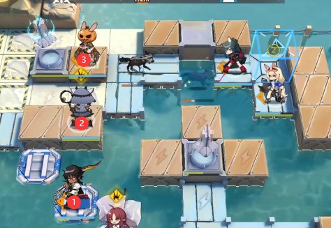 开局如图所示,下常规先锋产费 → 二号奶盾 → 3个垫子 → 桃金娘产费。