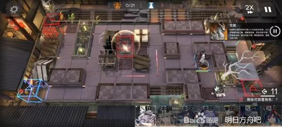 然后左下角再来个输出干员,也是打掉“无谓”,我用的焰影苇草,boss会用技能忍饥之怒,伤害不高但会持续伤害,用焰影苇草开正好开技能可以回血,她的作用不太大
