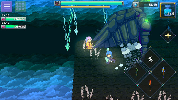 7、召唤伙伴后进入探索区,遇到怪物使用右下角的剑或弓进行攻击