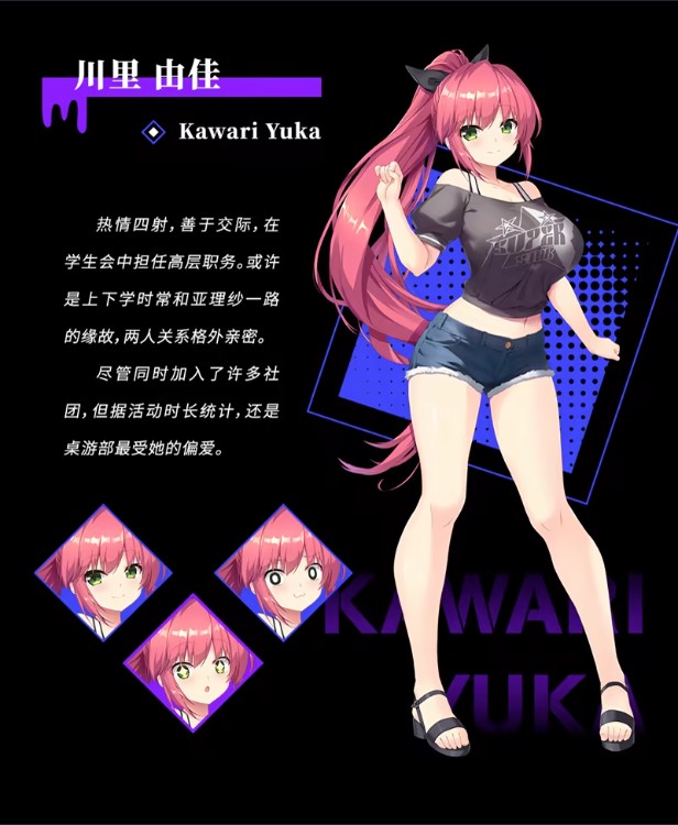 桌游部部员,十足的小恶魔。由于社团里有位不得了的大小姐,对自己出身平凡这点稍感自卑,因此在社团活动中两人常常不对付。兴趣是绘画,在平面设计的领域似乎也颇有一手。