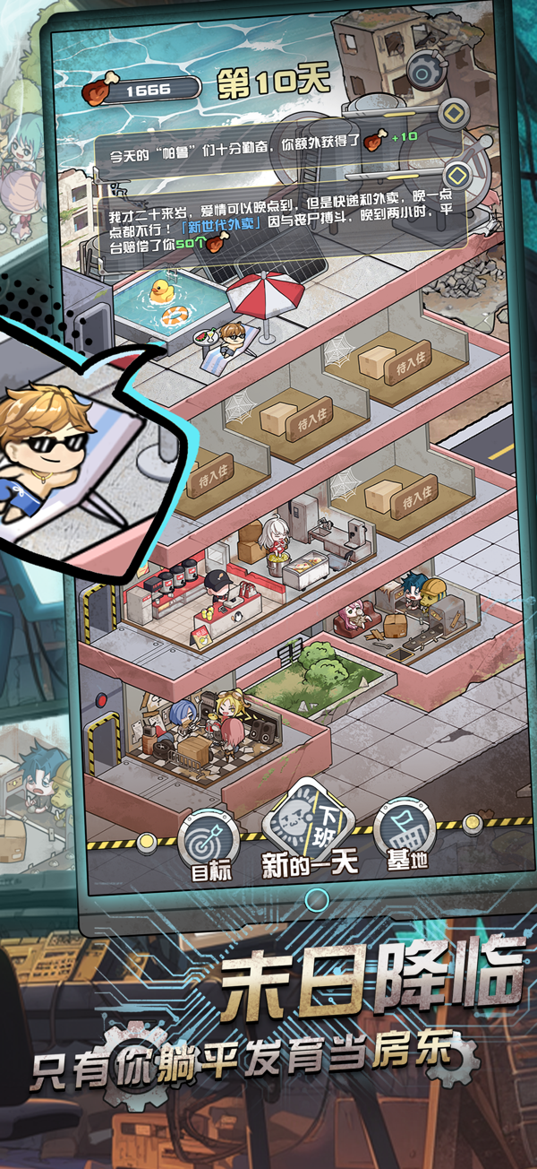 我在末日当房东,一款深受玩家喜爱的模拟经营肉鸽游戏。游戏将背包整理玩法、模拟经营以及肉鸽元素相结合,带给玩家全新的游戏体验。游戏中,玩家将在末日世界中扮演房东的角色,通过独特的躺平系统,玩家只需要选择合适的伙伴即可应对各种挑战和危机,从而赚取更多物资和租金。感兴趣的小伙伴们快来下载玩耍吧!