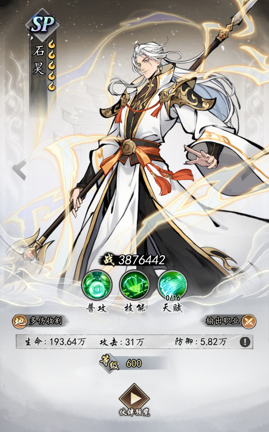 首充伙伴石昊可深度培养,另外优先收集搭配能激活阵势的伙伴,能额外激活属性加成。