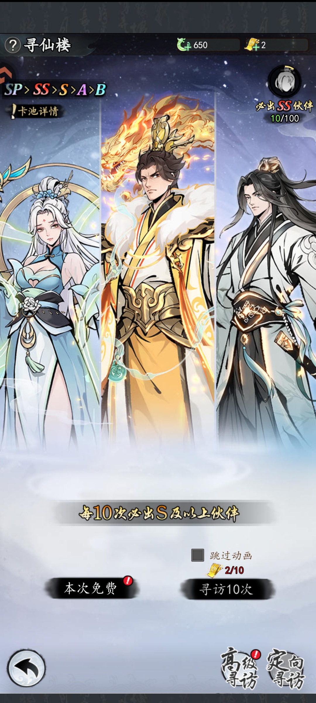 1、合理使用抽卡令牌:初期购买的寻仙令牌优先用于抽取伙伴,特别是针对您选择的阵营的伙伴,争取获得高品质核心SS伙伴,关卡通关奖励有大量的寻仙令奖励。