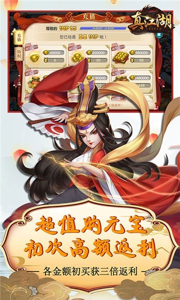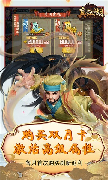 真江湖王者版是一款经典的武侠题材手游,经典的卡牌玩法上线,开启属于你的武侠真江湖,经典熟悉的名将齐聚,和你一起重现整个江湖的魅力,更有海量NPC带你进入这个沉浸式剧情。