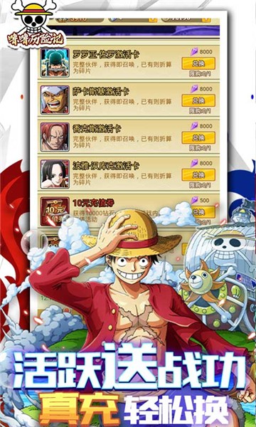 1、以超人气动漫航海王为背景,采用策略性很强的战斗模式。