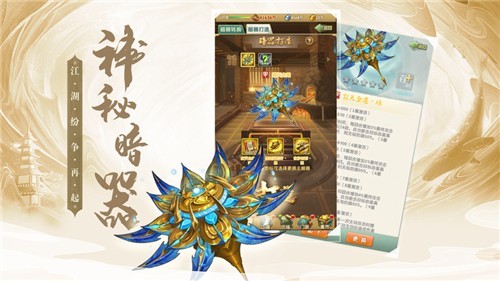 3、各种神兵绝学等你来体验,超强装备任你选择搭配强战力。