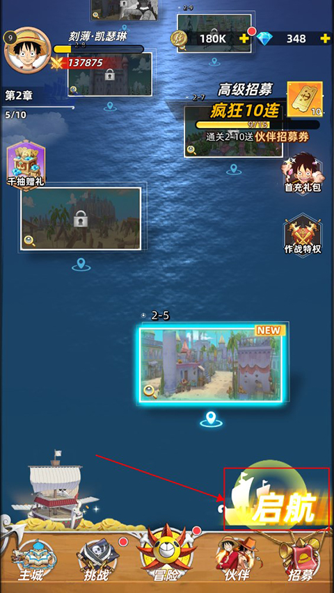 2、在闯关前需要招募一些航海伙伴,搭建强力队伍。