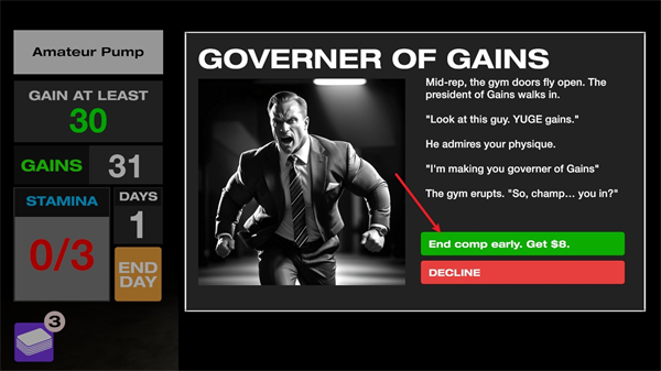 v1.1.1阿诺模拟器(内置菜单)是一款由Steam移植而来卡牌游戏,又名为健身模拟器、GET YOKED。游戏内加入了Roguelike元素,提供超过200张训练卡牌,每张卡牌的作用都各不相同,它们会帮助训练身体的不同部位,玩家需要合理的搭配。你的目标是不断地健身,提升身体的肌肉力量和线条,参加健美比赛并拿下冠军!