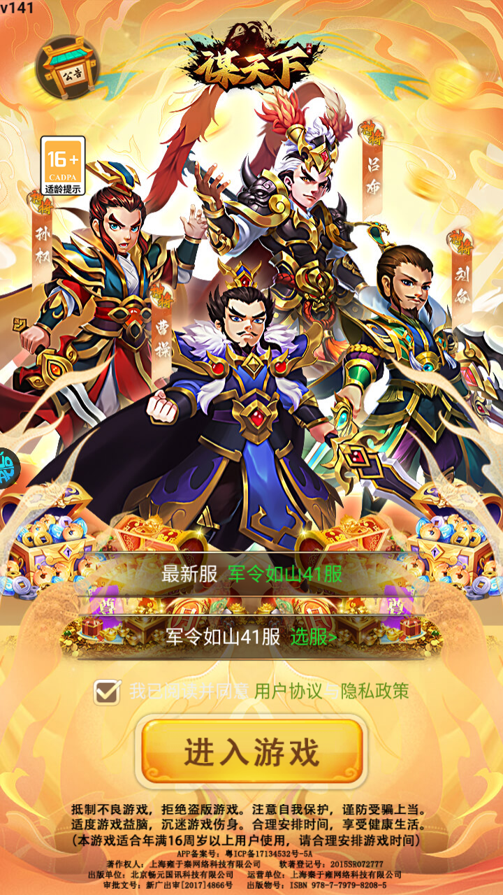 v1.0.0谋天下是一款精心打造的三国回合制策略卡牌手游,在这里,你将会成为乱世三国的一方霸主,带领你的贤臣谋士一起征战三国。游戏内有超多的卡牌角色,曹操、周瑜、黄忠、刘备、吕布等超多的忠臣名将任你差遣,丰富的技能机制让你享受策略乐趣,还加入了有趣的养成玩法,超多精彩活动等你来解锁!