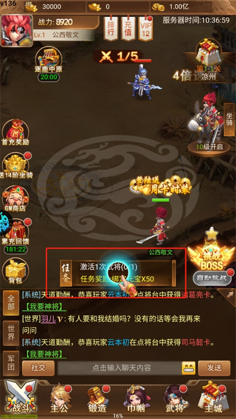 3、上线即领V1P12、GM商店特权、极品武将周瑜,超多福利享不停!