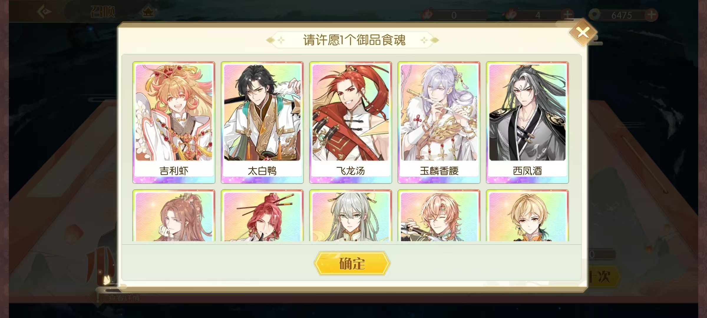选择心仪的心愿食魂后,如果召唤而来的御品食魂非心愿食魂则下次获得的御品食魂必为心愿食魂。心愿食魂可随时更改,年度限定食魂均在可选范围之内。