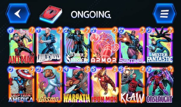 中文卡表: 蚁人、快银、惊恶先生、凯、哨兵、神奇先生、美国队长、科斯莫、战戟、钢铁侠、克劳、狂攻