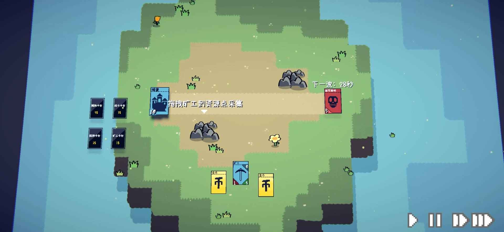 3、将矿工卡牌放置在矿场来获得金币卡牌。