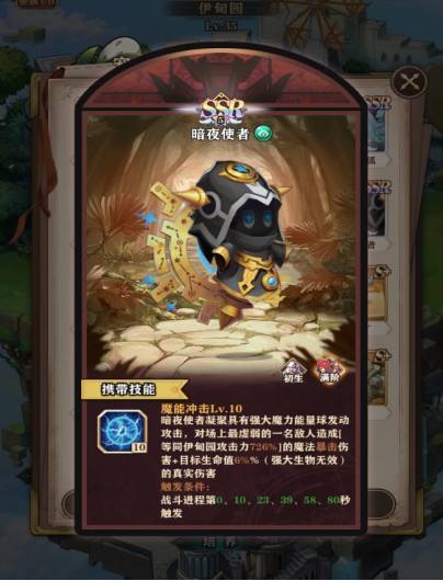 有着米拉弗斯和丑时之男的控制,足以令敌人失去抵抗之力,暗夜使者的技能魔能冲击,可以弥补这套搭配的最后一个缺点,伤害不足问题!726%的技能伤害,还能造成魔法暴击!一击一个小朋友,这谁顶得住?