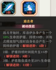 最后的一个被动技能更是库洛伊的保命神技,战斗开始的时候就自带护盾,且每次释放怒气技都能产生同样的护盾,更好的填补了被动三技能的技能空隔时间,做到某种程度上的一个无缝减伤护盾,令库洛伊不但是团队优秀坦更是迷宫小能手。