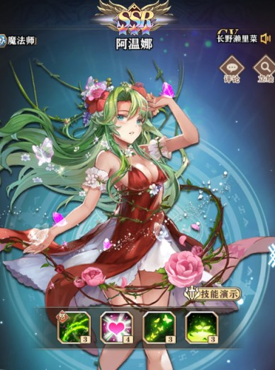 召唤蔓藤缠绕1名敌人,并造成120%的魔法伤害。被缠绕的敌人无法移动和攻击且无法闪避,并受到持续伤害。该技能是阿温娜的控制技能,同时还附带持续伤害效果。同时随等级解锁还会将控制的人数增加到3名。是个十分好用的控制技能。
