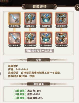 套装推荐:海啸套装,有提升法伤以及伤害加成的效果,适合法师角色。