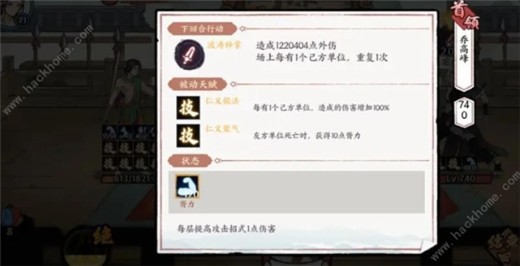 2.乔帮主每两回合攻击一次,且每四回合攻击是多次(根据场上队友数目增加,只剩他自己就是两次)。因而可带一张白浪连天,憋到第六回合用以格挡帮主高伤技能多争取两回合输出机会;