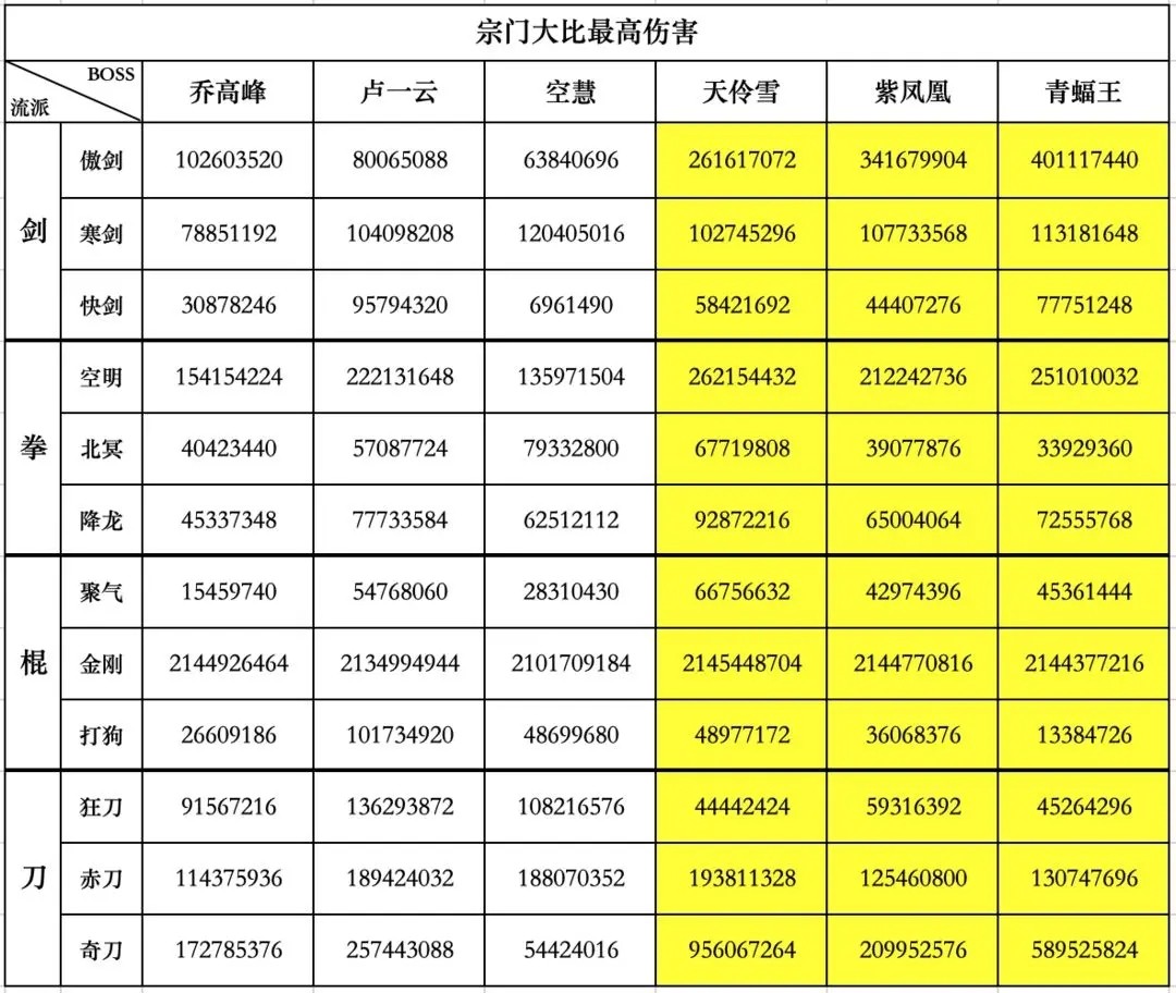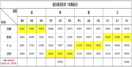 基于掌握的几个大区以及现有论坛大佬们的分享,从而统计出全服全流派擂台最高伤害。特殊增益下的伤害做另外处理,直到被超过为止,已置于横版底下,之后增益改动也作此处理,从而避免流派被错误高估。