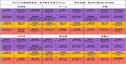 擂台为乔紫卢天四个boss轮流转换,下面是正常情况的增益表,改动另外说明。