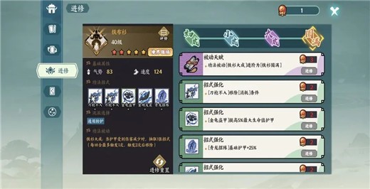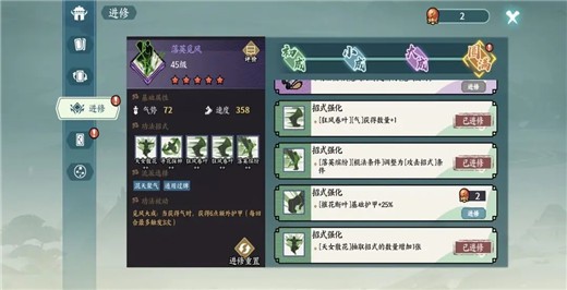 狂风卷叶补气加盾,混天高星时可换摧花断叶或落花无情(加临时膂力可使歌舞阎罗高伤换高盾)