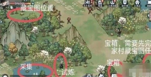 1、首先我们可以看到画面上标记的位置,在这些位置上寻找到宝箱和藏宝图的位置。