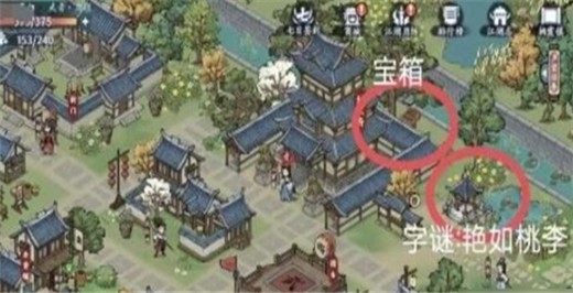 3、然后我们就来到了护城河附近的位置,在此页可以获取到宝箱,但是需要我们进入到凉亭当中进行解谜。【答案:艳如桃李】