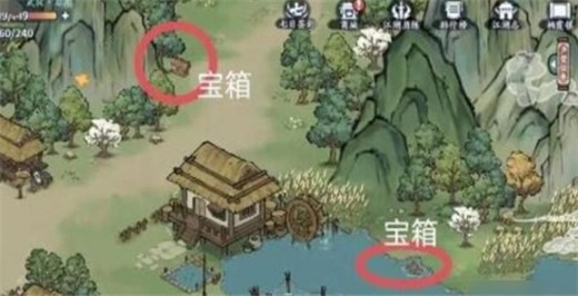 5、我们在水库的附近上的风车架子对面就可以发现到一个宝箱,我们进入到山洞当中还可以获取到藏宝图。