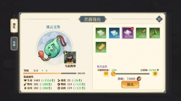 灵器的养成途径有两种:灵器强化和灵器突破,
