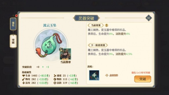 小贴士:灵器突破需要灵器强化到一定等级,还请各位结契者注意这一点。