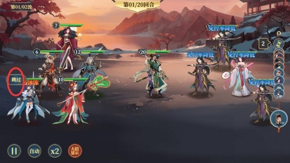 3、多挑战几次关卡就会升级解锁自动、2倍速和跳过模式了,在战斗时玩家可以直接点击左侧的“跳过”,这样方便玩家快速获得升级经验。