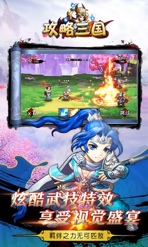 群雄汇聚战斗热血,激情澎湃的肆意闯关,不同类型的战场展现出惊心动魄的史诗级大战,玩家可收集自己喜好的三国名将,多章节版图随你征战,将一个不一样的三国体现的淋漓尽致。