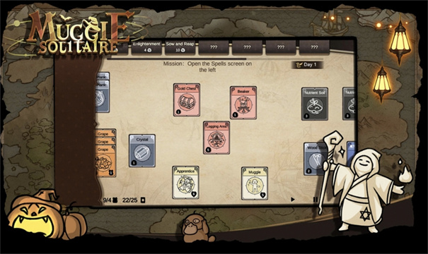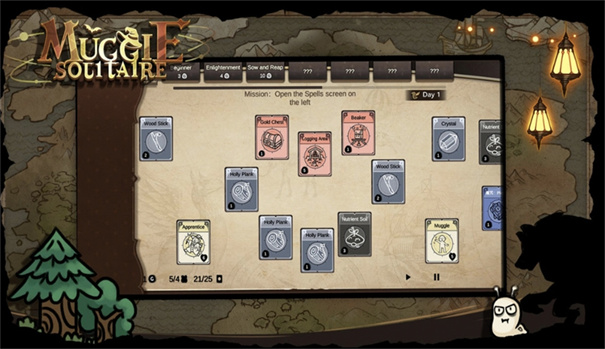 7、不断使用各种卡牌来帮助麻瓜生存下去吧。