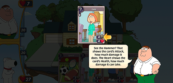 4、看到卡牌上的锤子了吗?它显示了卡牌的攻击力和造成的伤害,心形图标显示卡片的生命值,多少可能造成的伤害;