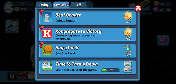 8、另外除了冒险关卡外,游戏内每天都有会提供一些游戏任务,玩家完成后可以领取到各种奖励;
