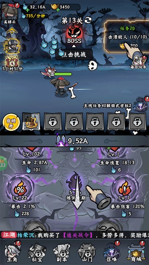 平民发家核心:每日种满 5 块地(优先升级「种子产量」科技),凌晨 1-2 点偷取活跃玩家的成熟作物(防偷机制 0 点重置)。领悟功法时,3 重以下不建议升级(分解损失 50% 材料),攒够 10 个大侠后再批量领悟(效率提升 40%)。