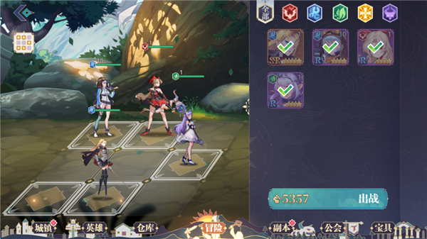 2、在搭配阵容环节,玩家可以点击卡牌上阵,并在阵容中调换卡牌角色位置。