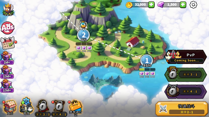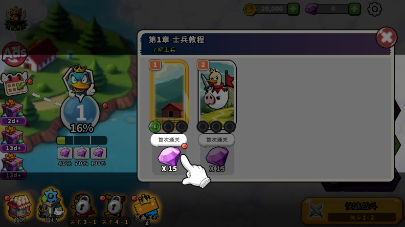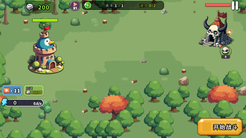 - 收集行动力,生产鸭子士兵来击败怪物!