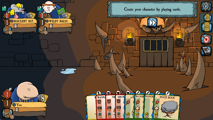 3、通过组合种族和职业卡牌来构建角色,然后准备好面对潜伏的怪物。