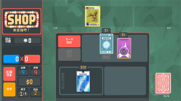 5、通关后会进入商店,可以利用获得的金币来解锁新的小丑牌和道具牌。