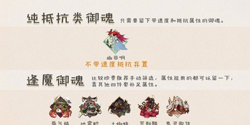 纯抵抗类御魂整理思路很简单,建议留下带速度和抵抗的就好!逢魔御魂最好是手动整理~因为对萌新来说获取难度太大所以只要属性能用就建议留下,差的属性尽量用四件套补足。