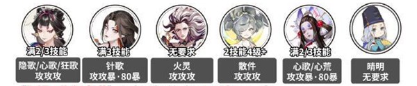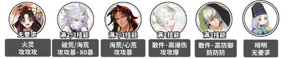 4、阵容中,丑时之女装配狂骨以及荒骷髅,铁鼠装配被服,蝉冰雪女装配涂佛,晴明带“言灵.星”,玉藻前装配狂骨以及荒骷髅,酒吞装配火灵。因为雪女的二技能西吹,有一个通用印记叫做冰花,可以在处于无法动作时,每叠加6朵冰花,激发极寒之气,对自身以外的队友以及敌人造成100%的不触发被动的攻击,所以,其他几个式神需要足够的防御力,以免被雪女的印记杀死。不过雪女的这个二技能的印记,也不全是坏处,可以配合酒吞童子的被动,增加酒吞的伤害,并且可以出发涂佛效果。