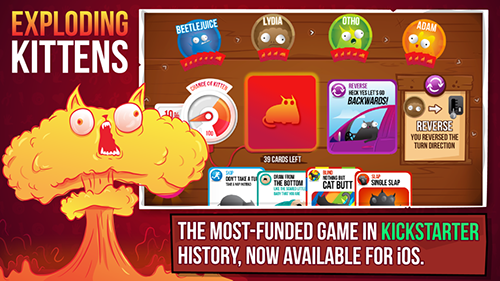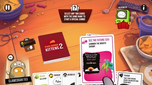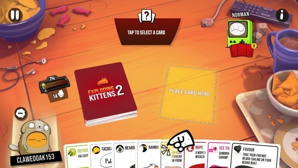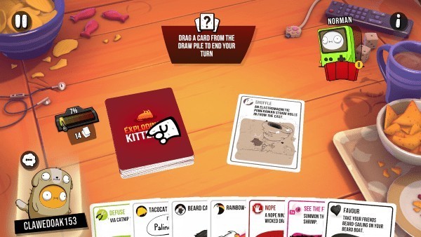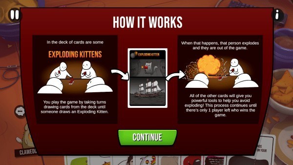 2、在这款以猫咪为主角的多人游戏中,玩家将不断抽牌,有人抽到爆炸猫就会爆炸。