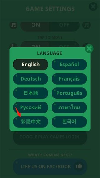 点击English按钮,进入语言界面,根据点击繁体中文即可