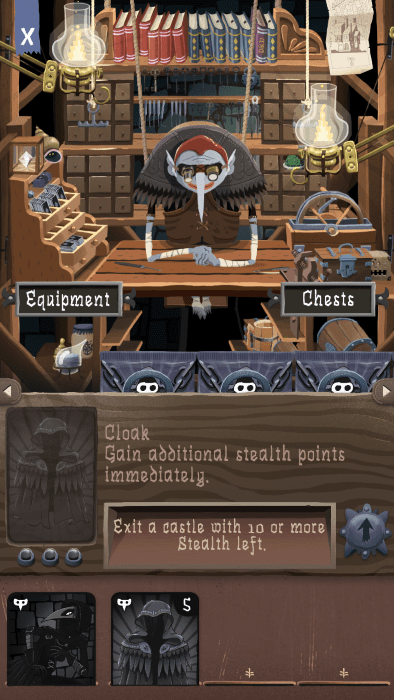 4、卡牌右上角蓝色的数字是需要消耗的潜行点,刺杀守卫的话消费会有连击惩罚,在主角潜行点归零之前,路过黑暗中的宝藏和守卫是可以开箱或刺杀的,不过归零之后只会换位置。金色的是金币,也有可以贿赂的官员。