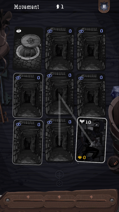 1、卡牌有守卫,宝藏,金币,火把,门,动作,装备以及主角,长按卡牌可以看说明。